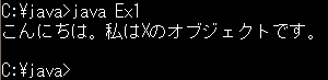 System.out.println("こんにちは。私はXのオブジェクトです。");