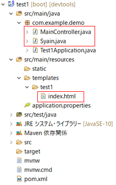 3.MainControllerクラスでSyainクラスにセットされたJSONの値を、コンソールに出力+index.htmlにJSONを返す。