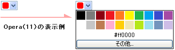 - Chrome(55)とOpera(12)では、入力候補として設定した色がカラーチャート内に表示されます。