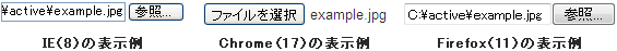 このタイプの入力欄では、ファイルを選択するための参照ボタンが表示されます。(ボタン上のテキストはブラウザにより異なります)
