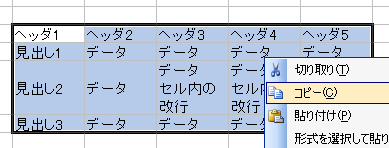 | 見出し2 | データ セル内の改行 |