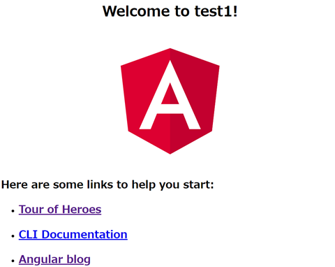 1行目のng newコマンドは、プロジェクトを作成します。test1はプロジェクト名です。任意の名前にできます。