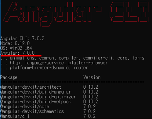 Angular CLIで以下のコマンドを入力するとバージョンが表示されます。