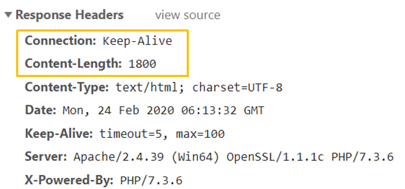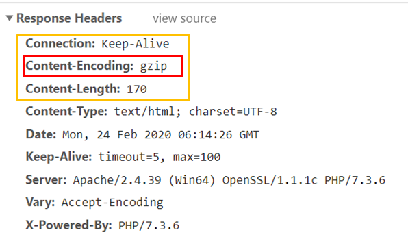 設定前のResponse Headresです。ConnectionとContent-Lengthの間に、Content-Encodingはありません。