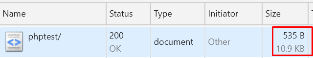 Sizeは転送容量です。上段が圧縮後の容量で535Bです。