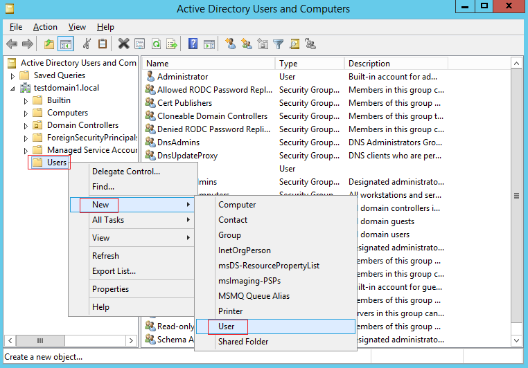 3.Usersを右クリックしNew>Userをクリックします。