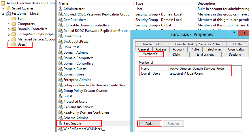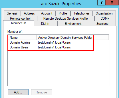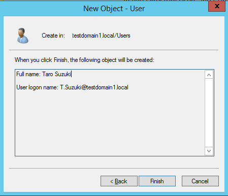 DistinguishedName : CN=Taro Suzuki,CN=Users,DC=testdomain1,DC=local