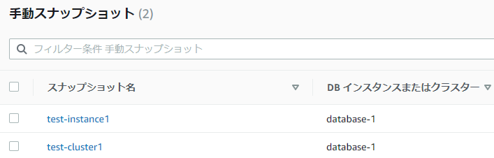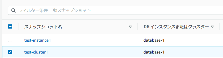 クラスターとインスタンスのスナップショットを取得しそれぞれ復元したところ。両方ともクラスターとインスタンスが復元されました。