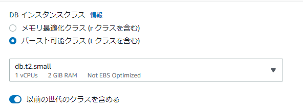 5.インスタンスクラスを選択します。その他の項目を入力・選択後、「DBクラスターを復元」をクリックするとAurora(MySQL)が復元されます。