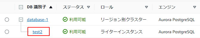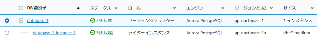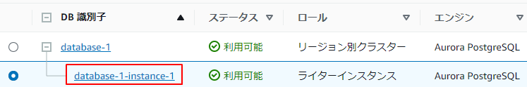 | DBクラスター識別子 | database-1 |