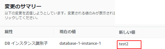 ※DB識別子を変更すると接続で使用するエンドポイントの値も変わります。