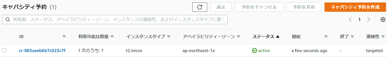 3.EC2の詳細を確認するとキャパシティーの予約のIDが表示されています。