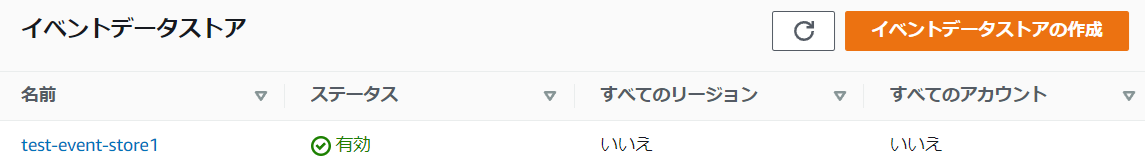 3.「イベントデータストアの作成」をクリックします。