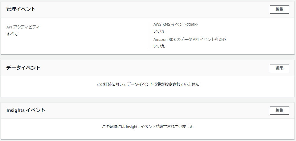 • 管理イベント・・・ログインやEC2インスタンス等の作成、削除等を指します。