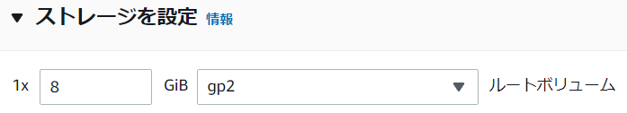 10.ストレージはデフォルトのままです。gp2は汎用SSDです。
