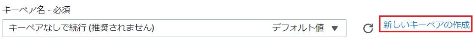 7.キーペアでは「新しいキーペアの作成」をクリックします。