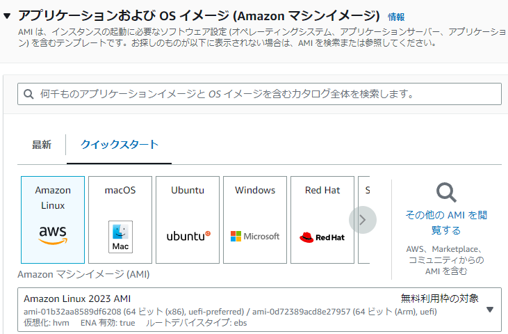 5.OSイメージ(Amazon マシンイメージ:AMI)は、Amazon Linuxを選択しました。