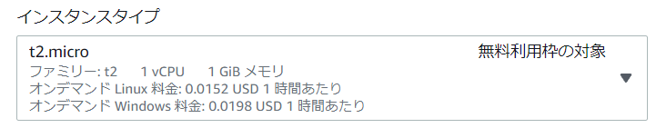 - インスタンスタイプはサーバーのスペックを表します。CPU、メモリ、ストレージ、ネットワーク等が含まれます。