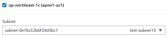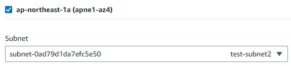(サブネットは2つ指定されていないとエラーになります)