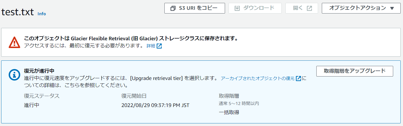 S3 Glacierからファイルを取得