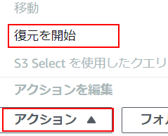 2.「アクション」から「復元を開始」をクリックします。