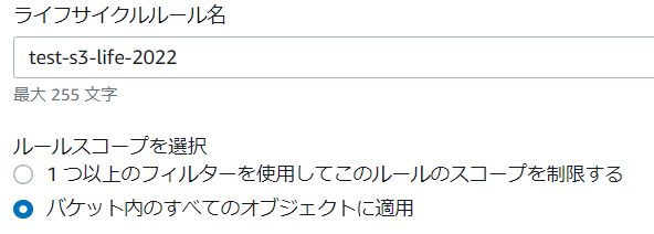 5.ライフサイクルルール名を入力し、ルールスコープを選択します。