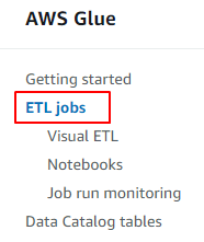 2.「ETL jobs」をクリックします。
