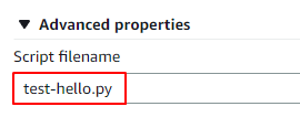 7.Advanced propertiesをクリックしてファイル名を入力します。(test-hello.py)