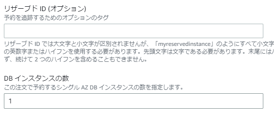 9.リザーブドID(オプション)とDBインスタンスの数を入力します。