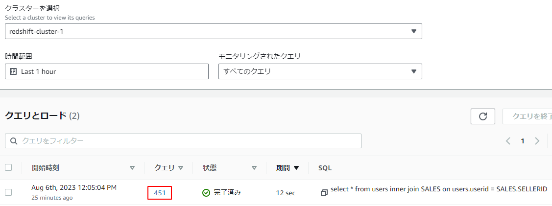 AWSのRedshiftでクエリを実行して実行計画を取得するサンプルです。