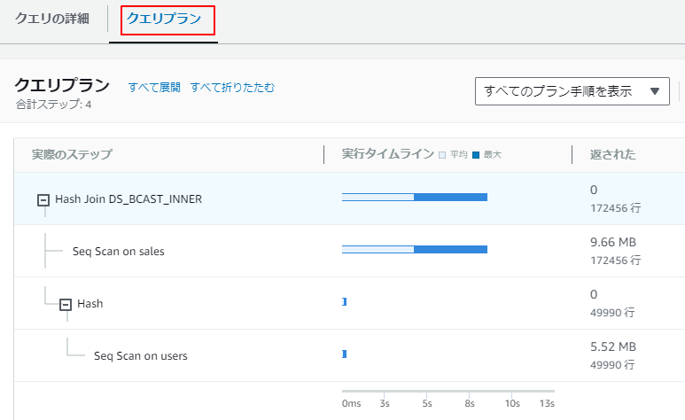 4.クエリプランをクリックするとクエリプランの実際のステップを確認できます。
