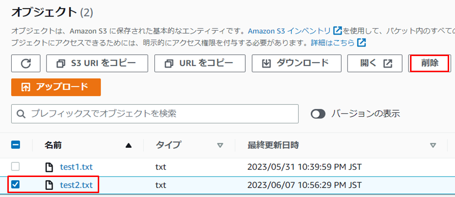 S3のファイルを削除する