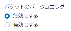7.「バケットのバージョニング」は「無効にする」のままにしました。