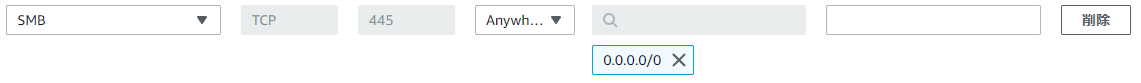LinuxがあるEC2のセキュリティポリシーのインバウンドルールにsmbを追加します。