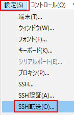 2.teratermでログイン後、設定>SSH転送をクリックします。