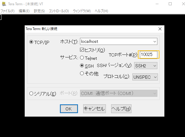 5.上記のteratermを立ち上げたまま、2つめのteratermを立ち上げます。