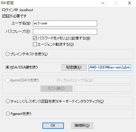 6.ユーザ名とパスフレーズまたはRSA鍵等でログインします。