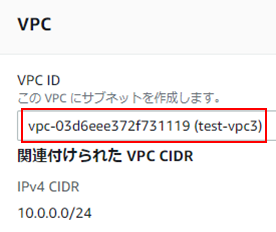VPCは、test-vpc3を指定