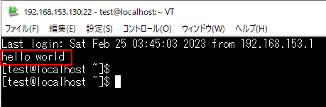 | ログイン時にhello worldの文字を表示するサンプル |