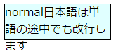 値がnormalで日本語の場合、単語の途中で改行します。
