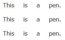 7行目は、単語間にスペースがない場合です。間隔はあきません。