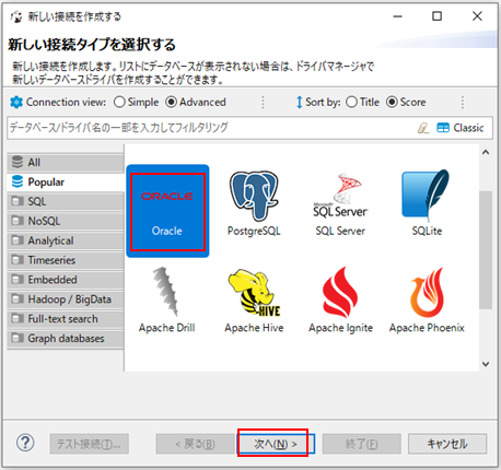 2.Oracleを選択して次へをクリックします。