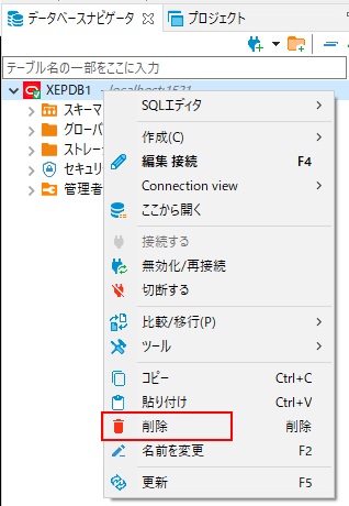 | Oracleの接続を削除する |