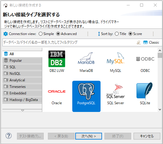 2.PostgreSQLを選択して次へをクリックします。