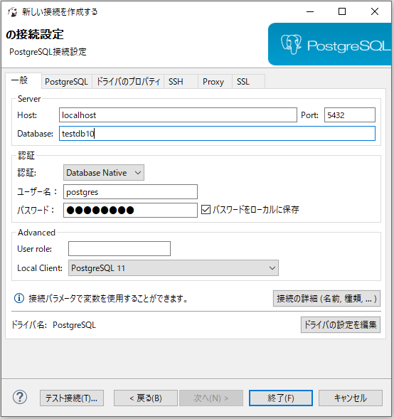 | DBeaverでPostgreSQLに接続する | |