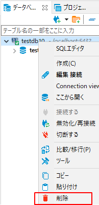 接続を削除したいデータベースを右クリックし削除をクリックします。