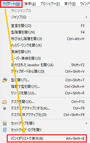 Eclipseのパンくずリストの表示と非表示の方法です。