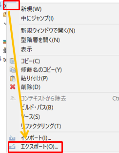 2.プロジェクトを右クリックしてエクスポートをクリックします。