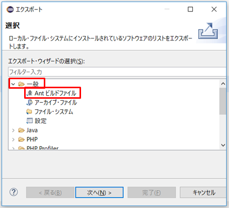 3.「一般」→「Antビルドファイル」をクリックし次へを押します。