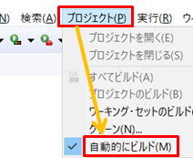 1.Eclipseの「プロジェクト」→「自動的にビルド」を外します。
